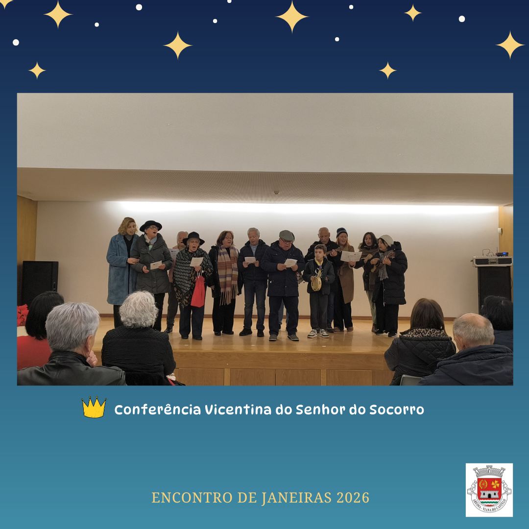 Na noite da passada sexta-feira, do dia 09 de janeiro, realizou-se o Encontro de Janeiras no Salão do Centro Social e Paroquial do Senhor do Socorro. Os grupos e todos os presentes foram recebidos e saudados pela Presidente da Junta, Filomena Rolo, e pelo Pároco da Paróquia do Senhor do Socorro, Padre João Basto. Tivemos a honra de assistir às apresentações dos grupos de janeiras do Centro Social Paroquial do Senhor do Socorro (Centro de Convívio e o Jardim de Infância), da Comissão de Festas de Nossa Senhora de Vinha, da Conferência Vicentina do Senhor do Socorro, do Grupo Etnofolclórico "Renascer" de Areosa, do Agrupamento de Escuteiros 343 do Sr. do Socorro, do Grupo Etnográfico de Areosa, e da Fábrica da Igreja do Senhor do Socorro. Divulgámos nas nossas redes sociais um pouco das apresentações de cada grupo, ilustradoras da qualidade e beleza das cantigas de janeiras e da vivacidade dos nossos grupos. Ao vivo, o ambiente foi de alegria, espontaneidade, entusiasmo, muita e boa música, vozes em harmonia e uma dinâmica interação com o público. O que se sente e o que se vive transpõe as palavras: revigora-nos enquanto comunidade e orgulha-nos como Freguesia! Este é um encontro que evidencia cada vez mais a identidade e o talento areosenses: de quem canta, de quem toca, de quem compõe, de quem declama, de quem preserva e reinventa as tradições e mantém viva a comunidade. A todos os grupos, o nosso profundo agradecimento por esta noite memorável. À comunidade que aceitou o convite e se juntou a esta festa, a nossa gratidão. Ao Padre João Basto e à equipa do Centro Social e Paroquial do Senhor do Socorro, o nosso muito obrigado por terem acolhido esta iniciativa de forma tão calorosa e por toda a colaboração prestada.