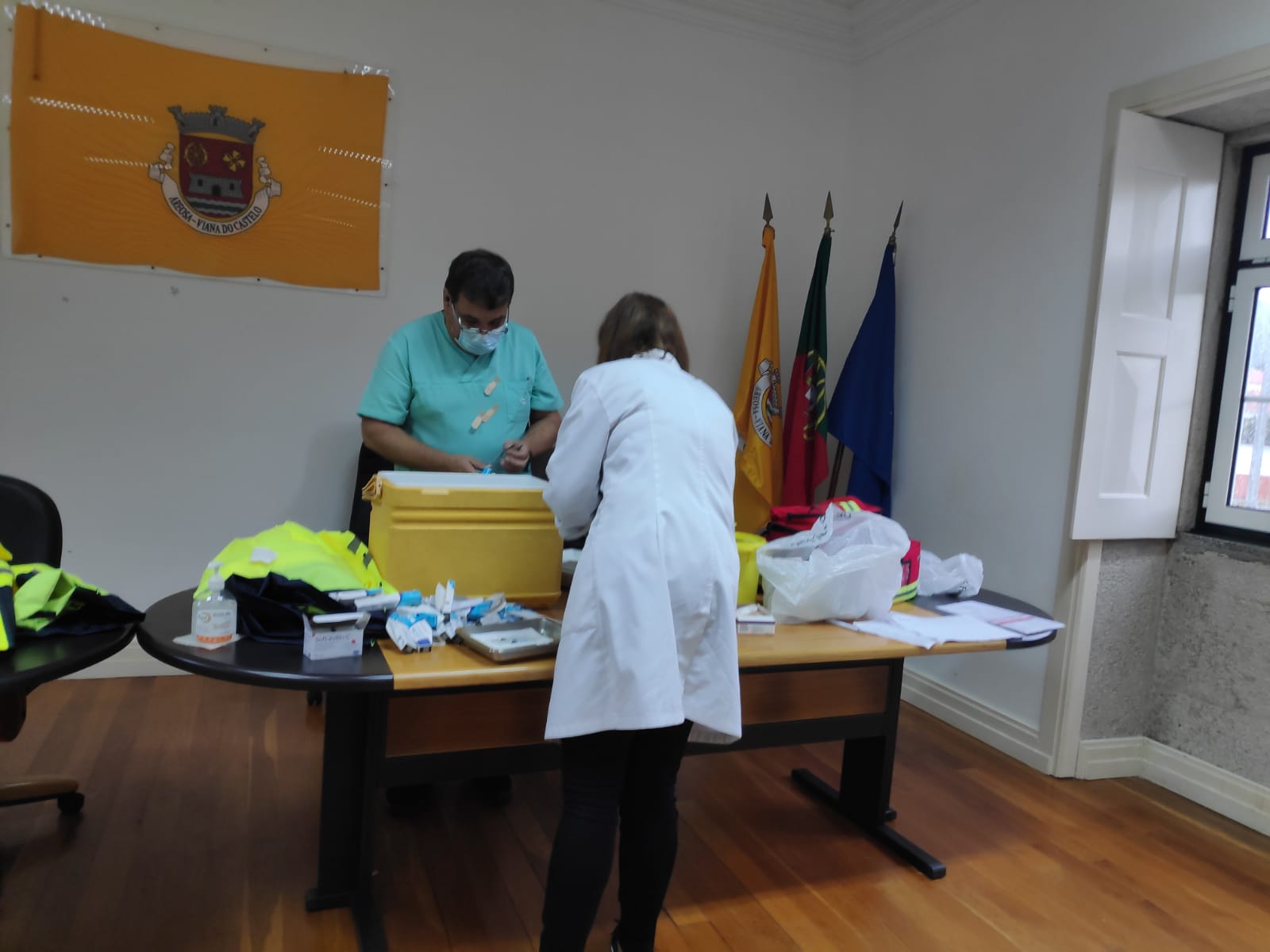 Esta manhã, mais de 80 pessoas, com idade igual ou superior a 65 anos, foram vacinadas em Areosa, no Salão Nobre da Junta de Freguesia, por uma equipa de enfermeiros da ULSAM - Unidade Local de Saúde do Alto Minho EPE, no cumprimento do Plano de Vacinação COVID-19 e Gripe Sazonal.