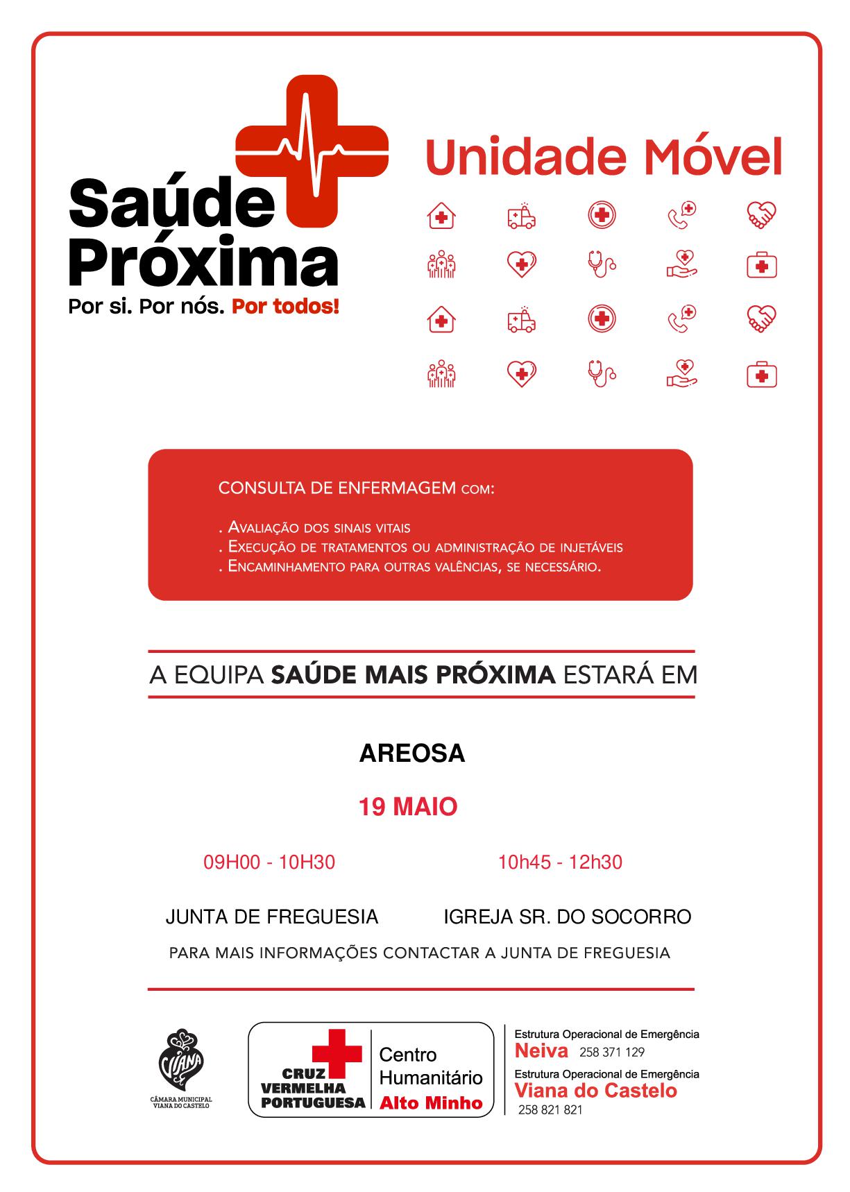 A Unidade Móvel de Saúde estará em Areosa, na próxima sexta-feira, dia 19 de maio, nos seguintes horários: