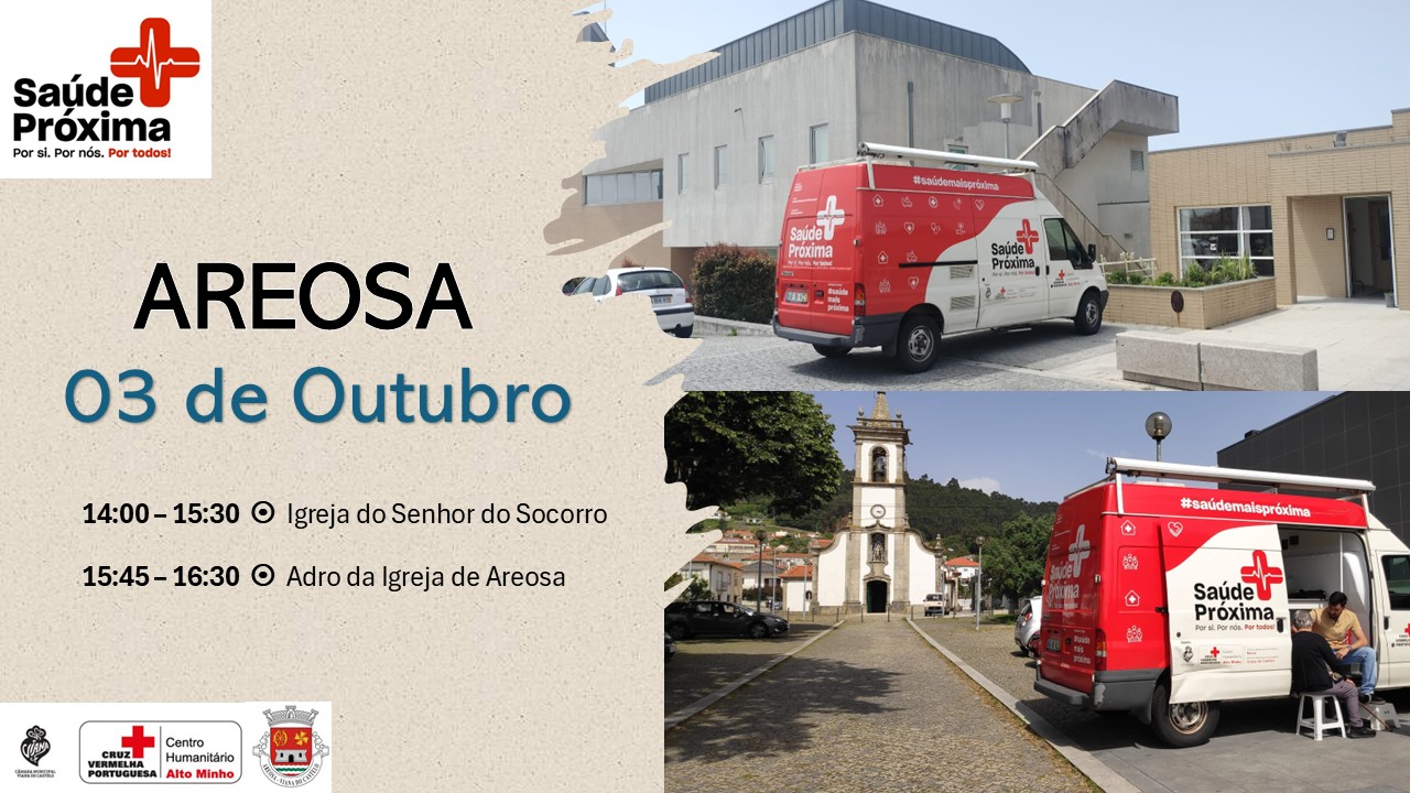 A UNIDADE MÓVEL DE SAÚDE MAIS PRÓXIMA ESTARÁ EM AREOSA NO DIA 03 DE OUTUBRO.