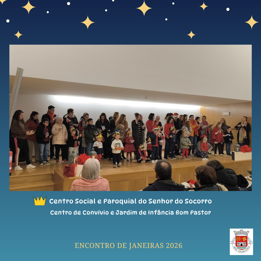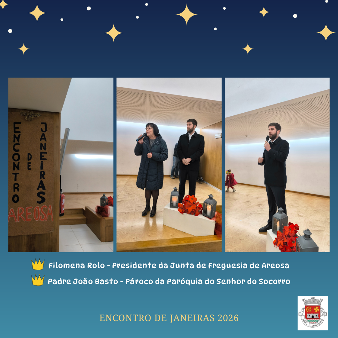 Na noite da passada sexta-feira, do dia 09 de janeiro, realizou-se o Encontro de Janeiras no Salão do Centro Social e Paroquial do Senhor do Socorro. Os grupos e todos os presentes foram recebidos e saudados pela Presidente da Junta, Filomena Rolo, e pelo Pároco da Paróquia do Senhor do Socorro, Padre João Basto. Tivemos a honra de assistir às apresentações dos grupos de janeiras do Centro Social Paroquial do Senhor do Socorro (Centro de Convívio e o Jardim de Infância), da Comissão de Festas de Nossa Senhora de Vinha, da Conferência Vicentina do Senhor do Socorro, do Grupo Etnofolclórico "Renascer" de Areosa, do Agrupamento de Escuteiros 343 do Sr. do Socorro, do Grupo Etnográfico de Areosa, e da Fábrica da Igreja do Senhor do Socorro. Divulgámos nas nossas redes sociais um pouco das apresentações de cada grupo, ilustradoras da qualidade e beleza das cantigas de janeiras e da vivacidade dos nossos grupos. Ao vivo, o ambiente foi de alegria, espontaneidade, entusiasmo, muita e boa música, vozes em harmonia e uma dinâmica interação com o público. O que se sente e o que se vive transpõe as palavras: revigora-nos enquanto comunidade e orgulha-nos como Freguesia! Este é um encontro que evidencia cada vez mais a identidade e o talento areosenses: de quem canta, de quem toca, de quem compõe, de quem declama, de quem preserva e reinventa as tradições e mantém viva a comunidade. A todos os grupos, o nosso profundo agradecimento por esta noite memorável. À comunidade que aceitou o convite e se juntou a esta festa, a nossa gratidão. Ao Padre João Basto e à equipa do Centro Social e Paroquial do Senhor do Socorro, o nosso muito obrigado por terem acolhido esta iniciativa de forma tão calorosa e por toda a colaboração prestada.